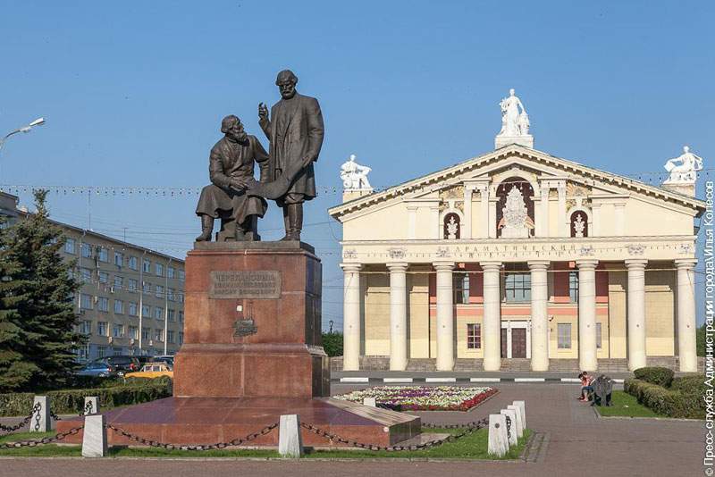 На фото запечатлены памятник паровозу Черепановых в комплекте со шпалами из Новосибирского музея железнодорожной техники. Далее памятник отцу Ефиму Алексеевичу и сыну Мирону Ефимовичу Черепановым на Театральной площади Нижнего Тагила. И пока не памятник, а виновник прошедшего торжества – Рязанский шпалопропиточный завод в г. Кушва.